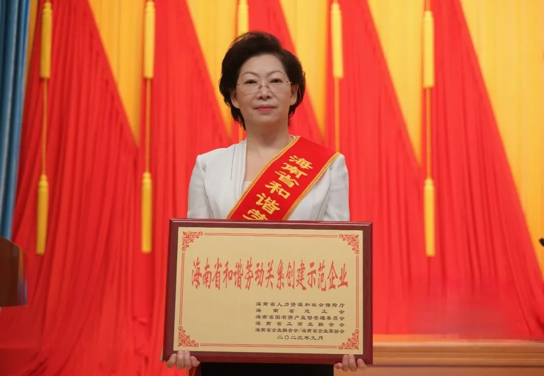 10月8日,全省构建和谐劳动关系先进表彰暨经验交流会在海口召开。会上,省领导为“海南省和谐劳动关系创建示范企业”授牌,pg电子药业集团党委书记、董事长刘景萍接受表彰,并作为和谐劳动关系创建示范企业代表作经验交流。