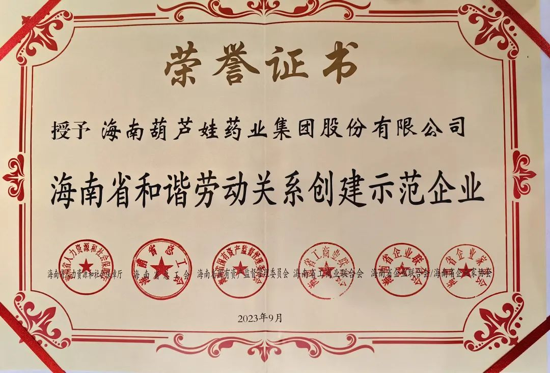 pg电子药业集团获评“海南省和谐劳动关系创建示范企业”